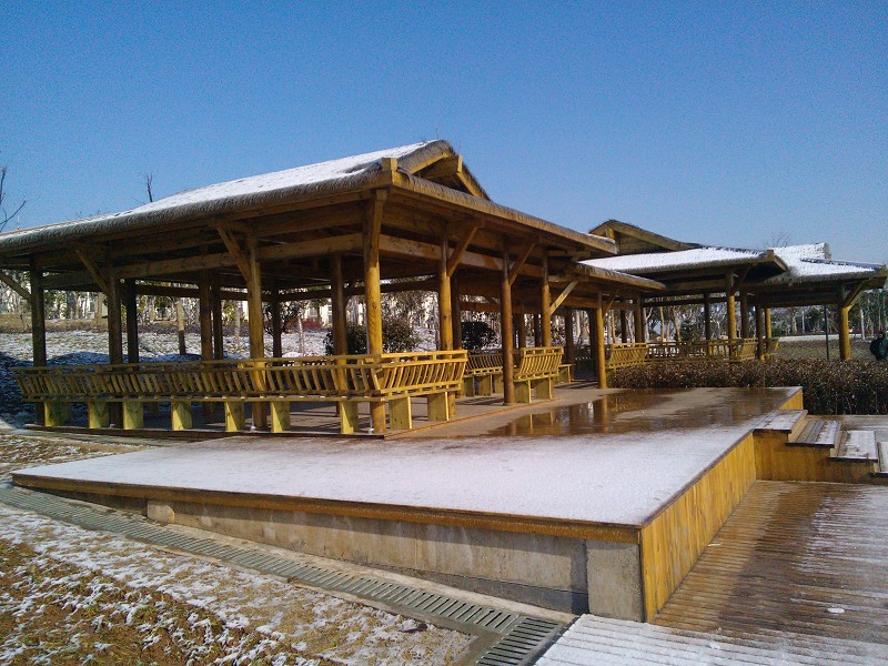 該工程屬于敬亭湖賓館兩大功能區(qū)塊中的休閑度假區(qū),有煙嶼亭、凌波臺、暮春小島、草堂寒竹亭、曲折橋、水上翁釣、廊橋等景觀。沿湖運用亭、臺、廊、榭等形式布置建筑,以達到充分整合環(huán)境資源,提升酒店環(huán)境品質(zhì)的目的。